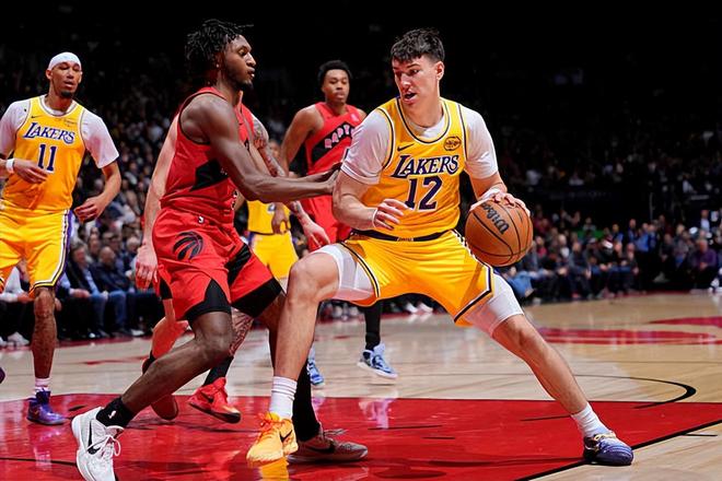 本场比赛中,湖人的替补侧翼新援杰克-拉拉维亚(Jake LaRavia)的表现也是有了不小的进步的。拉拉维亚全场出场28分13秒,投篮8中5,三分线外3中2,罚球2中2,得到了14分7篮板2抢断1盖帽的数据,其中还包括了3个前场篮板,还有2次失误和3次犯规,正负值为+1。拉拉维亚在进攻端终于将自己的得分能力、无球移动能力和投射能力发挥了出来。拉拉维亚可能也知道自己需要在场上承担起更多的责任,他显得坚决了许多,这样的变化也取得了积极的效果。拉拉维亚也确实是在进攻端为球队提供了不少的支持。除此之外,拉拉维亚在防守端的表现同样是可圈可点的,他也同样能够在防守端起到很好的效果。拉拉维亚这一系列攻守兼备的表现也是湖人能够战胜实力不俗的对手的重要因素。